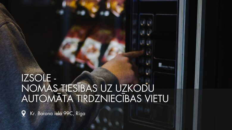 SIA "Latvijas Nacionālais sporta centrs" izsludina izsoli par uzkodu automāta tirdzniecības vietas nomu, kas atrodas Krišjāņa Barona ielā 99c, Rīgā. Izsoles identifikācijas Nr. 1-17.2/70.